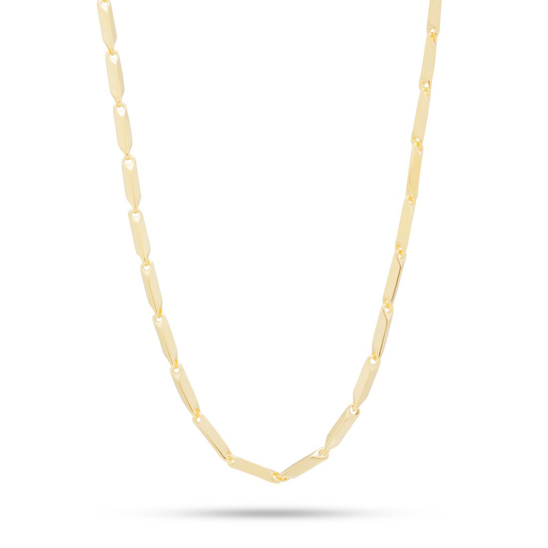 The Bullet link chain provides a unique look apart from the popular street wear chains. With its stainless steel material and 14K Gold ionic plating, the bullet link chain is a perfect choice to go against the trend.