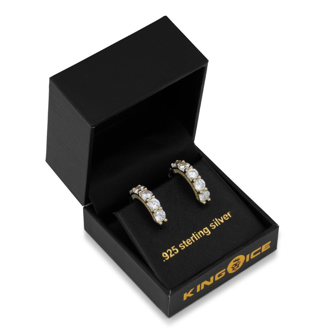 The round handset CZ stones on the .925 Sterling Silver Loop Earrings come in multiple sizes which makes them perfect for any occasion. Smaller CZ stones outline the earrings for a brighter finish. The earrings are available in 14K Gold plating and white gold plating. The lever back clasp on the earrings offer a secure and comfortable wear.